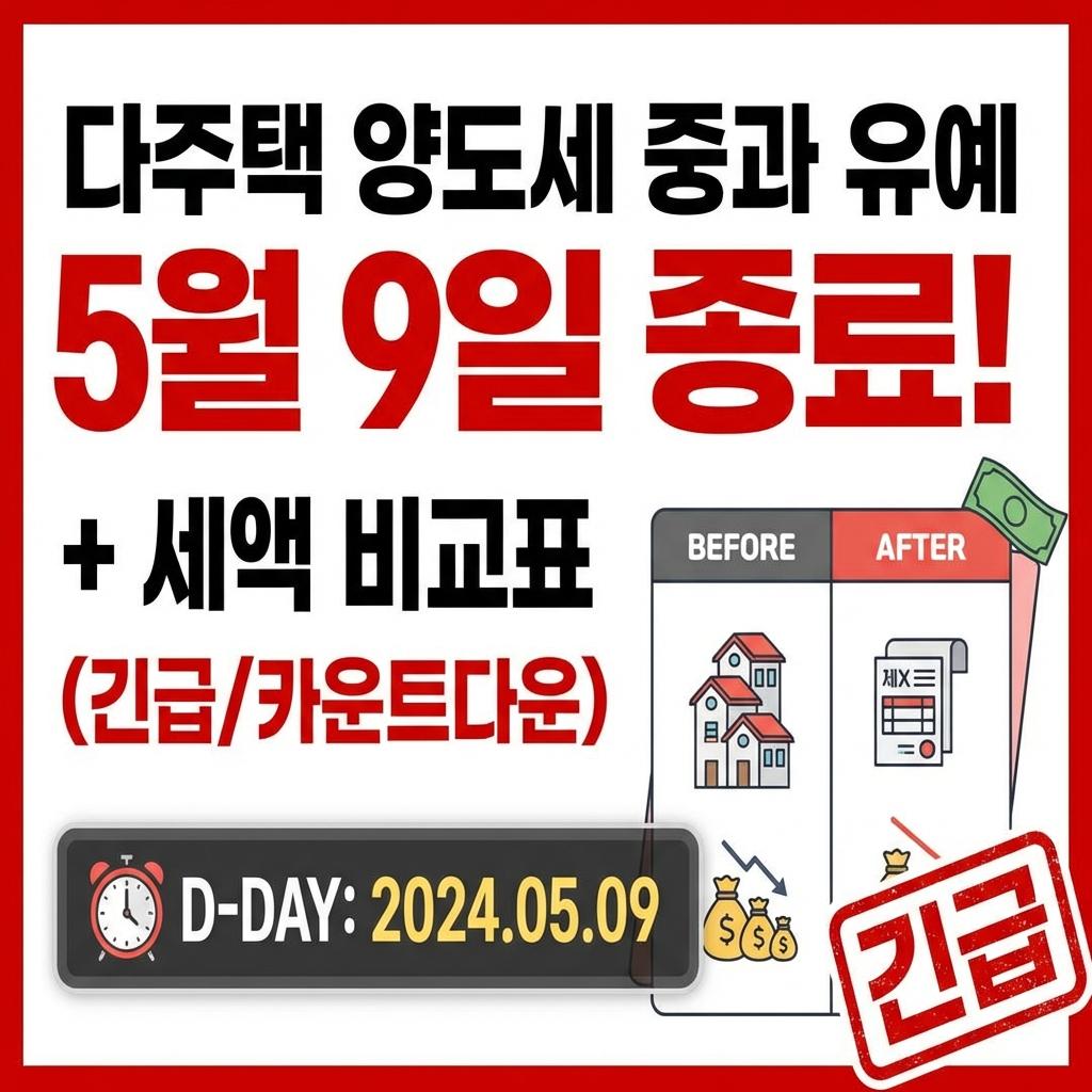 다주택 양도세 중과 유예 5월 9일 종료 + 세액 비교표 (긴급/카운트다운)